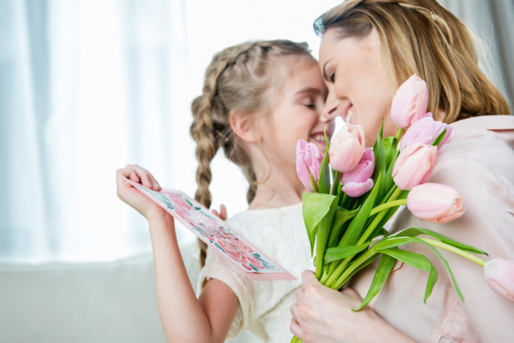 Найпопулярнішими подарунками у День матери Украинаа є квіти. Традиційно дарують тюльпани, троянди або лілії — символи чистоти, ніжності та любові. У багатьох родинах діти самостійно збирають букети або створюють паперові квіти. Цей простий жест завжди викликає у мами усмішку й сльози радості.